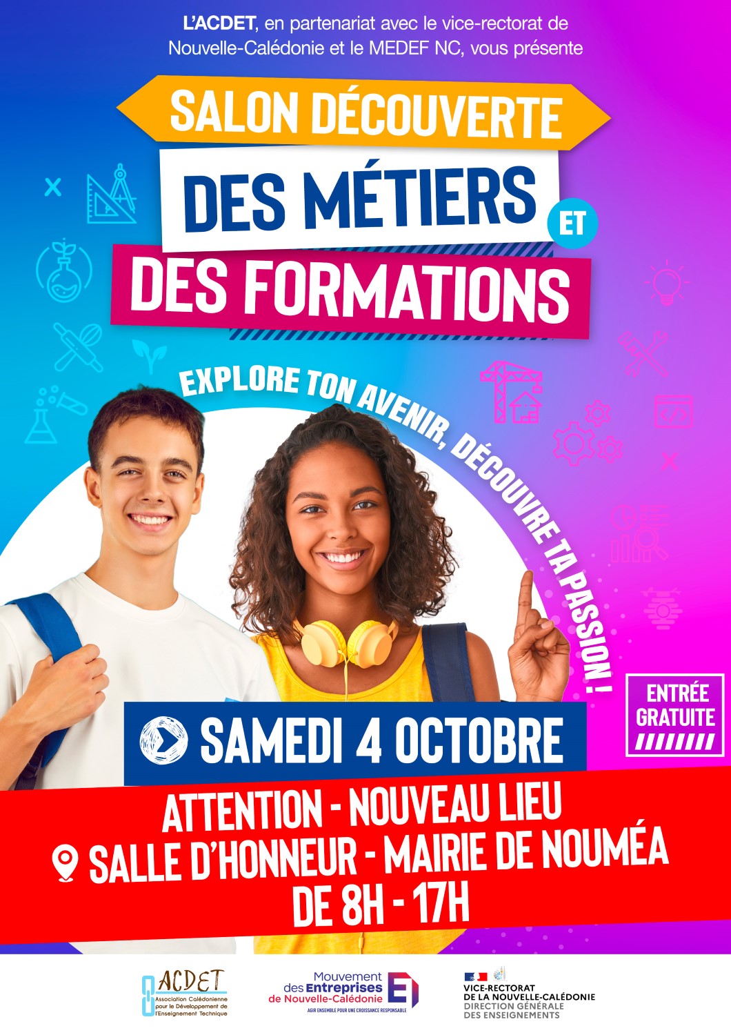 Rendez-vous ce samedi 4 octobre, de 8h à 17h, pour le Salon "Découverte des Métiers et des Formations" à la salle d’honneur de la Mairie de Nouméa 📍.