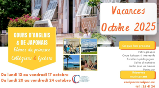 2ème semaine des vacances : du lundi 20 au vendredi 24 octobre, de 8h15 à 11h45 (5 jours).